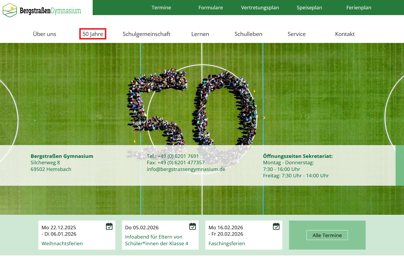 Das ist die Seite des Bergstraßen Gymnasium in Hemsbach.Die Seite wird auch Web · Seite genannt.