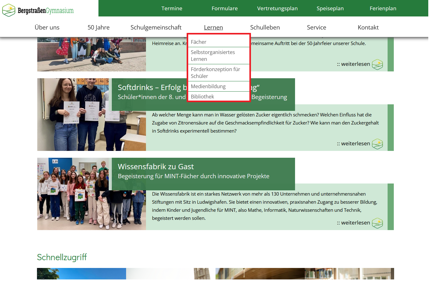 Sie finden im Bereich Lernen finden Sie folgende Informationen:- Fächer