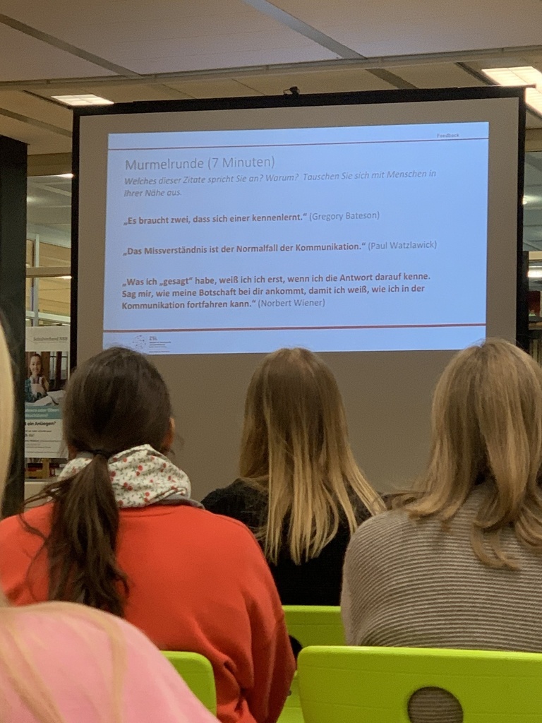Die Referentinnen Frau Rüttgers und Frau Ruhnau stimmten damit auf das Thema ein: Was ist Feedback? Wozu gibt es Feedback und wann ist es in welcher Form geeignet?