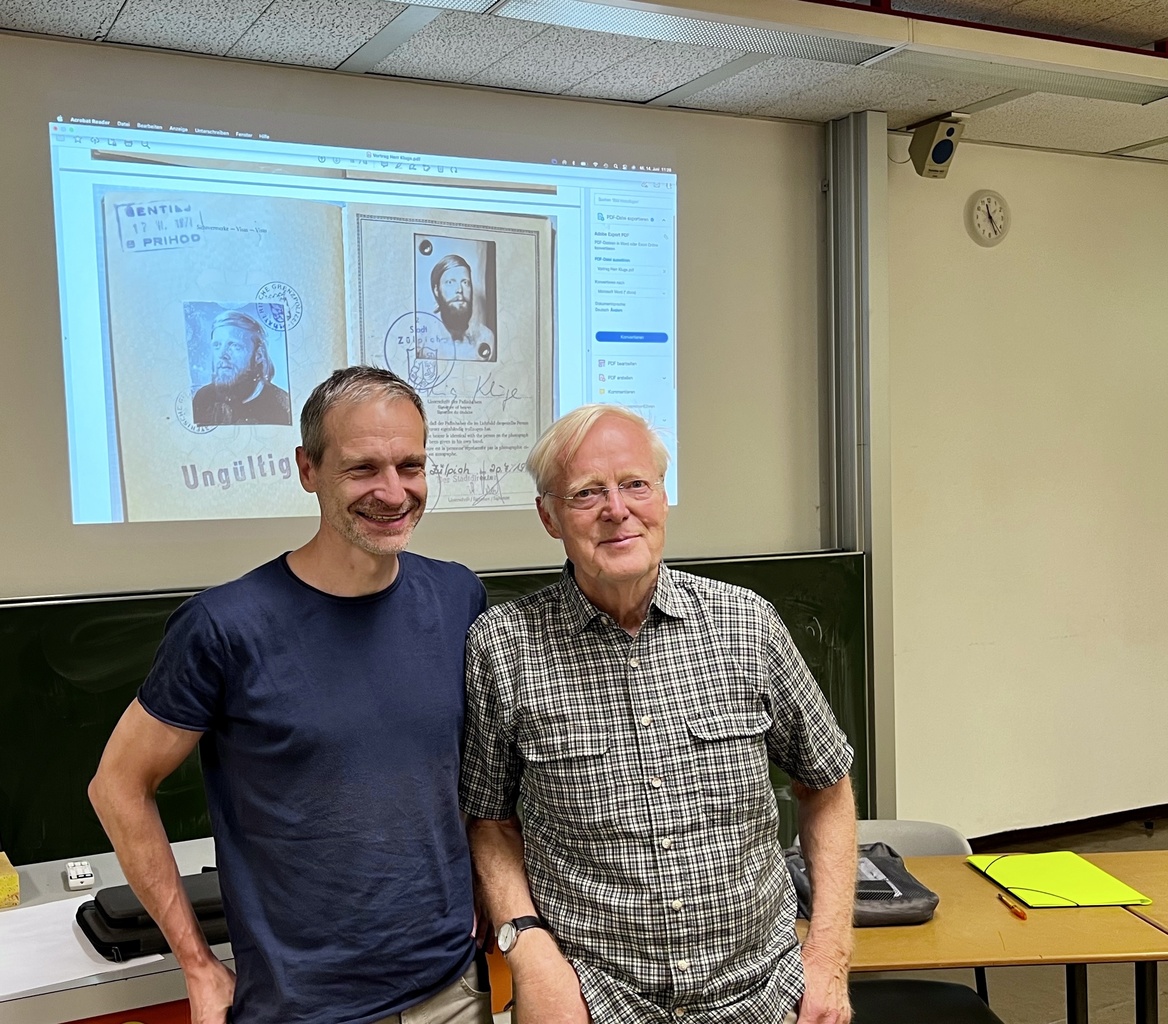Auf dem Bild: Hartwig Kluge (rechts) und Herr Vogel (links), Lehrer am Bergstraßen-Gymnasium