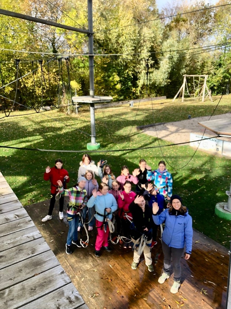 Um Selbstvertrauen und Teambuilding innerhalb unserer Gruppe ging es in unserer ersten Exkursion am 16.November 23 in den Hochseilgarten nach Wiesloch. Angeleitet von Teamern lösten die M-Kids gemeinsam verschiedene erlebnispädagogische Aufgaben und durften im Anschluss ihre Grenzen im Hochseilgarten austesten.