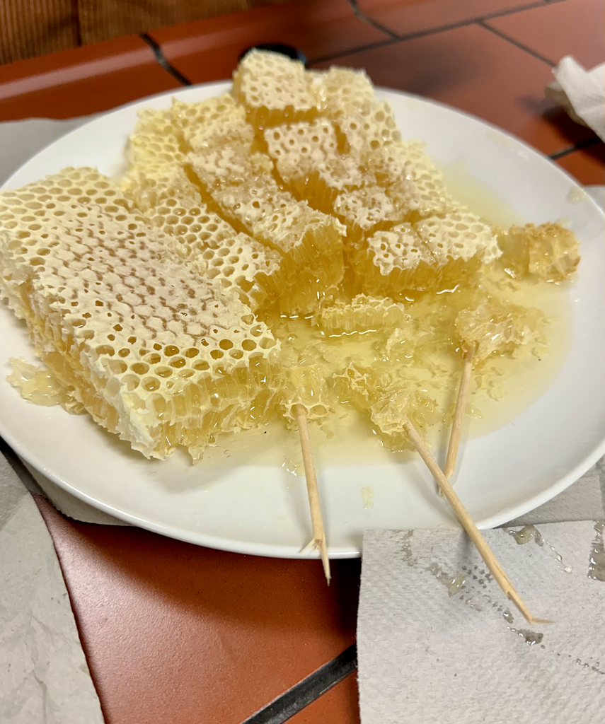 Abschließendes Highlight war das Probieren von Honigwaben. Frau Finn entfernte aus einem Rähmchen die Waben mitsamt des Honigs darin. Der Wachs aus den Waben ist unbedenklich und kann mitgegessen werden. Die Schüler*innen der Klasse bekamen also die Möglichkeit, den wohl frischesten Honig zu essen, den man sich nur vorstellen kann – direkt von der Wabe mit einem Zahnstocher in den Mund. Die Reaktionen waren gespalten. Einige Schüler*innen bekamen nicht genug, andere fanden den frischen Honig etwas zu süß. Insgesamt waren jedoch alle Schüler*innen von dem Erlebnis begeistert.