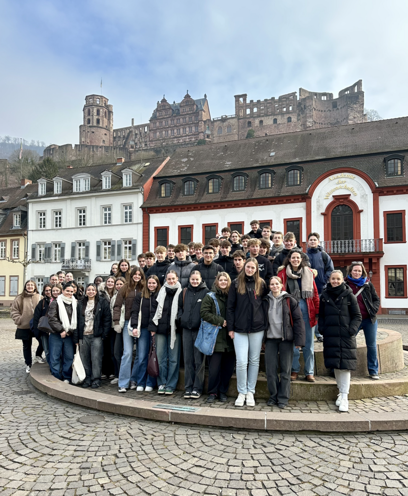 Am Mittwoch, den 05. Februar, besuchte die gesamte Jahrgangsstufe 2 im Rahmen des Ethik- und Religionsunterrichts eine Schüler*innen-Vorlesung an der Universität in Heidelberg. Diese wird von der evangelischen theologischen Fakultät angeboten und das Angebot wird mit großer Begeisterung angenommen – der Hörsaal war voll mit Kursen aus der gesamten Region.