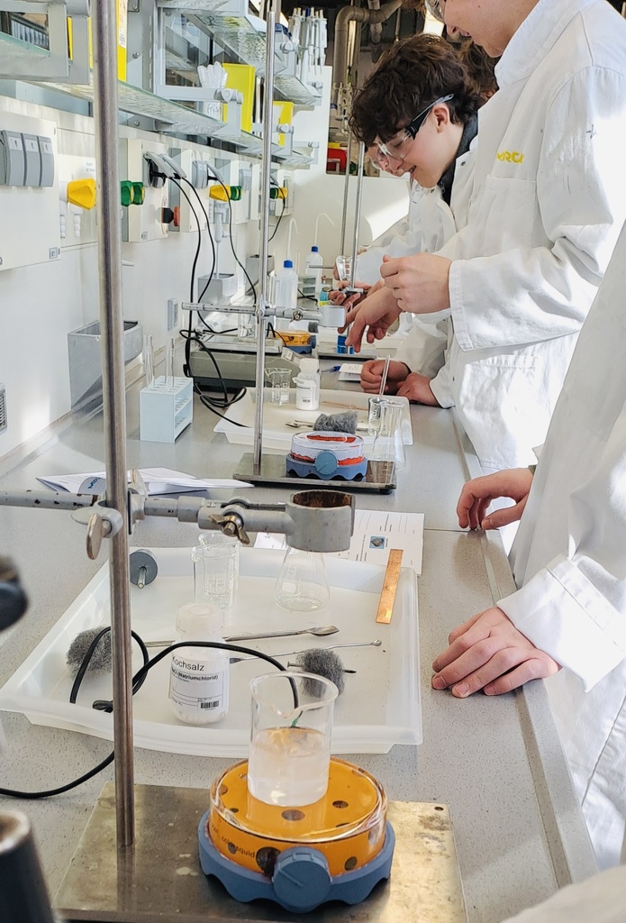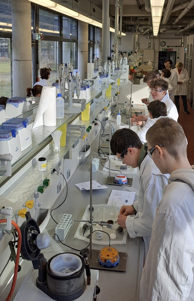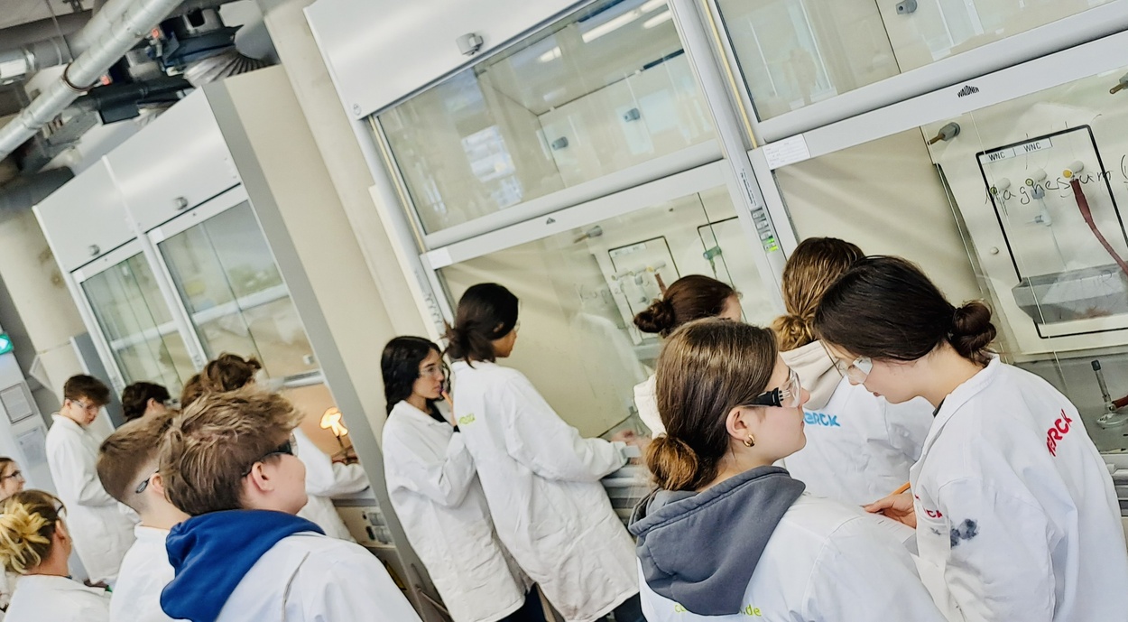 Am 21. Februar 2025 wurde der Chemieunterricht der Klasse 9c von Frau Franz ins Schülerlabor der TU Darmstadt in Kooperation mit der Firma Merck verlegt. Dort standen Redox-Reaktionen im Mittelpunkt – also chemische Prozesse, bei denen Elektronen wandern und dabei faszinierende Effekte entstehen.