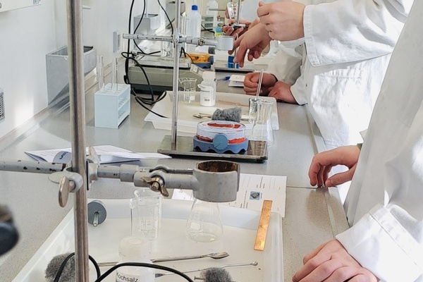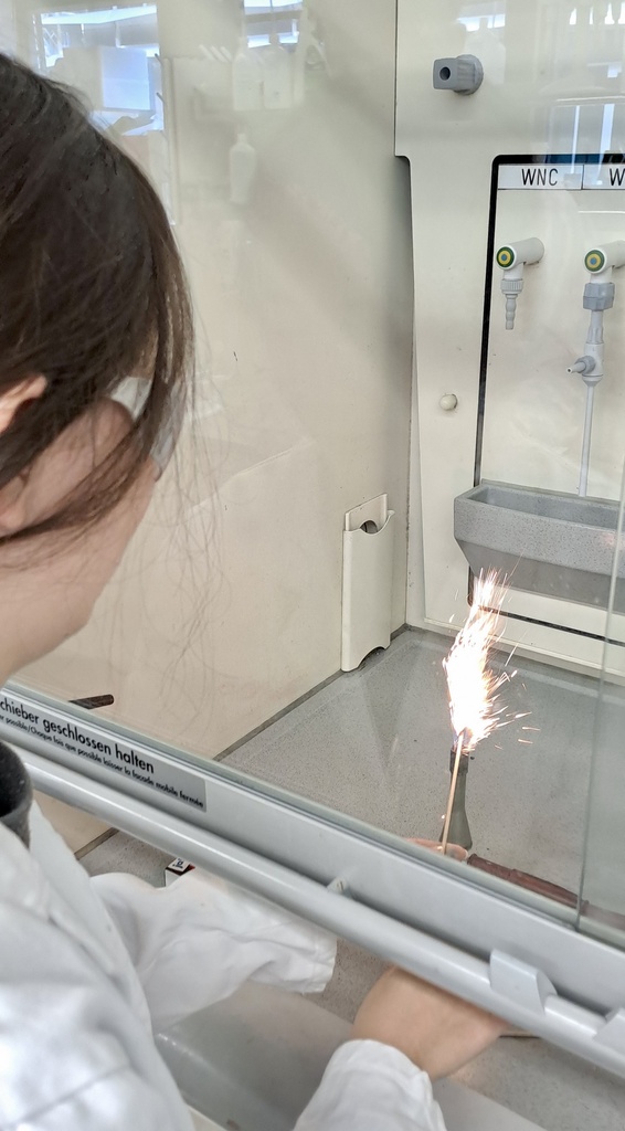 Im Labor experimentierten die Schüler*innen mit verschiedenen Metallen: Was lässt Eisen schneller rosten? Welche Metalle reagieren besonders heftig? Und wo sprühen sogar Funken? Mit Schutzbrillen auf der Nase und Reagenzgläsern in der Hand wurde geforscht, beobachtet und gestaunt.