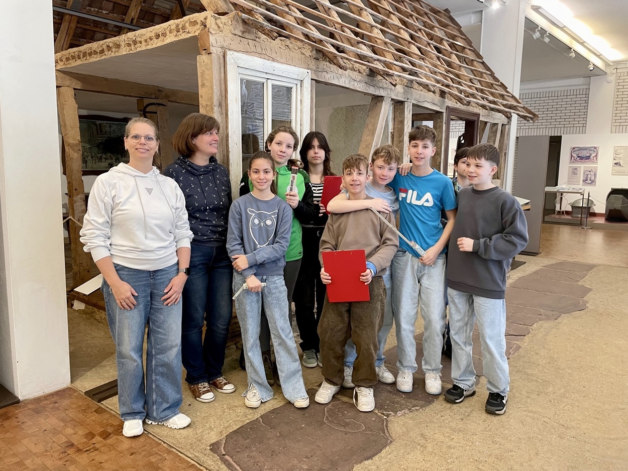 Im Rahmen der Mathe AG besuchten die M-Kids aus der Jahrgangsstufe 7 das Technoseum in Mannheim. Begleitet wurden sie von ihrer AG Leiterein Frau Dr. Grimmel und von Frau Bausewein. Finanziert von der Vector Stiftung erwartete die Gruppe von 8 M-Kids ein spannender Workshop rund um Maßstäbe und Modelle. Die Aufgabe war es das „Odenwaldhaus“, das im Original im Museum aufgebaut ist, zu vermessen und ein maßstabgetreues Modell davon zu bauen.
