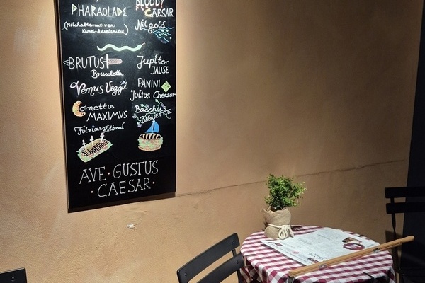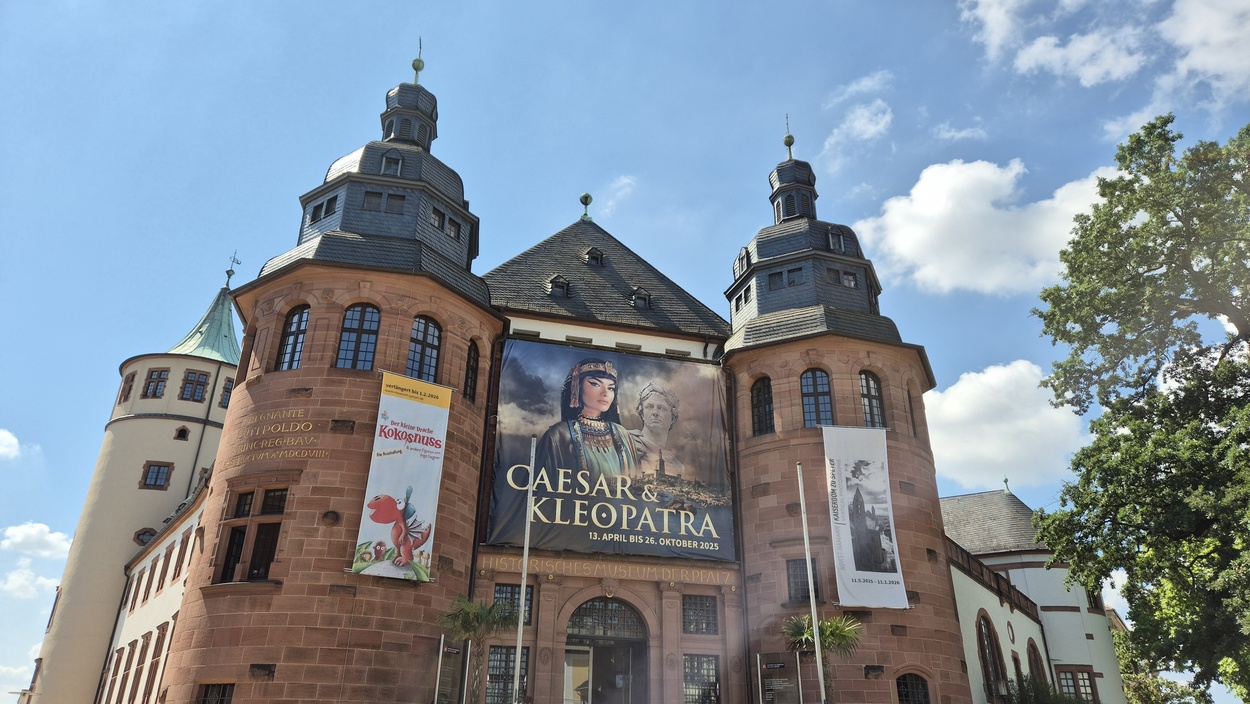 Nach einer kleinen Pause im kühlen Domgarten oder in einer der nahegelegenen Eisdielen stand schließlich der Hauptprogrammpunkt an: Der Besuch der Ausstellung „Caesar & Kleopatra“ im Historischen Museum der Pfalz. Schon von weitem machte ein großes Banner mit den Porträts des römischen Feldherrn und der ägyptischen Königin auf die sagenumwobene Beziehung zwischen diesen beiden schillernden Persönlichkeiten der Antike aufmerksam.
