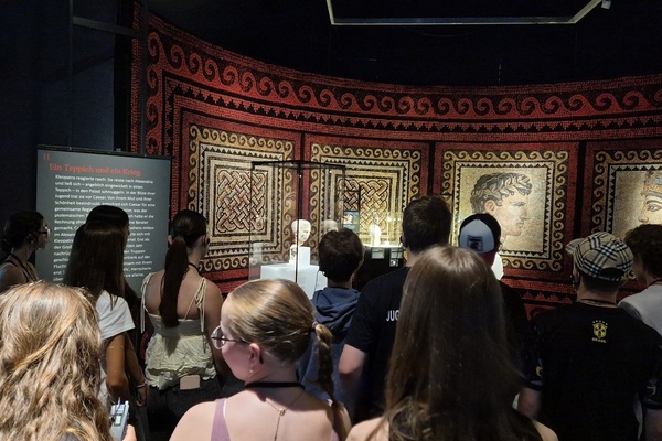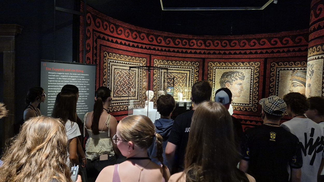 Bei einer kurzweiligen Führung beschäftigten sich die Schüler*innen mit dem Verhältnis von Mythos und Realität, von Liebe und politischem Kalkül sowie vom Untergang der einen und dem Aufstieg der anderen Weltordnung. Dabei konnten zahlreiche Exponate bestaunt werden, darunter seltene Leihgaben aus dem Pariser Louvre und den Kapitolinischen Museen Roms. Erlebbar wurde die Geschichte auch durch aufwendige virtuelle Rekonstruktionen.