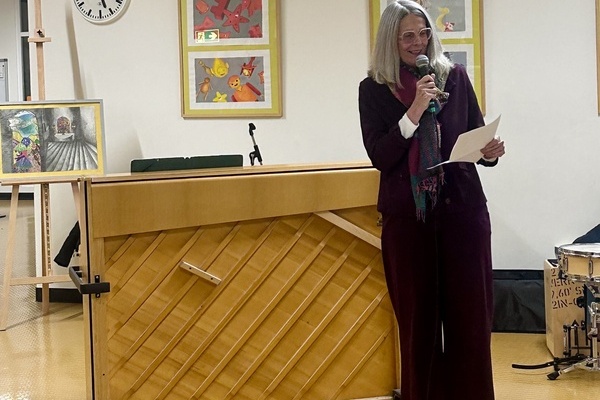 Anschließend blickte Ann-Christin Schwarz, die Vorsitzende des Elternbeirats, auf das vergangene Jahr zurück und gab zugleich einen Ausblick auf das Jahr 2026. Sie sprach über Neuerungen, wie die Umstellung auf G9 und die damit verbundenen Gesetzesänderungen, sowie über schulinterne Projekte, wie die Ausschreibung des Schulessens. Aber auch bekannte Veranstaltungen wie das Sommerfest und die Trialoge stehen wieder auf dem Programm. Besonders hervorgehoben wurde, dass in diesem Schuljahr bereits einige Austauschprogramme haben, zum Beispiel nach Lyon und Malta, stattgefunden haben, und die Skifreizeit kurz bevorsteht. Frau Schwarz würdigte zudem die Aktivitäten der SMV sowie die Weihnachtsaktion „Wer hat das am schönsten dekorierte Klassenzimmer?“, die die Vorbereitungsklasse gewonnen hat. Abschließend bedankte sie sich bei der Schulleitung für die konstruktive Zusammenarbeit und sprach einen besonderen Dank an die beiden Jahrgangsstufen für die Organisation des Essens und der Getränke für aus.