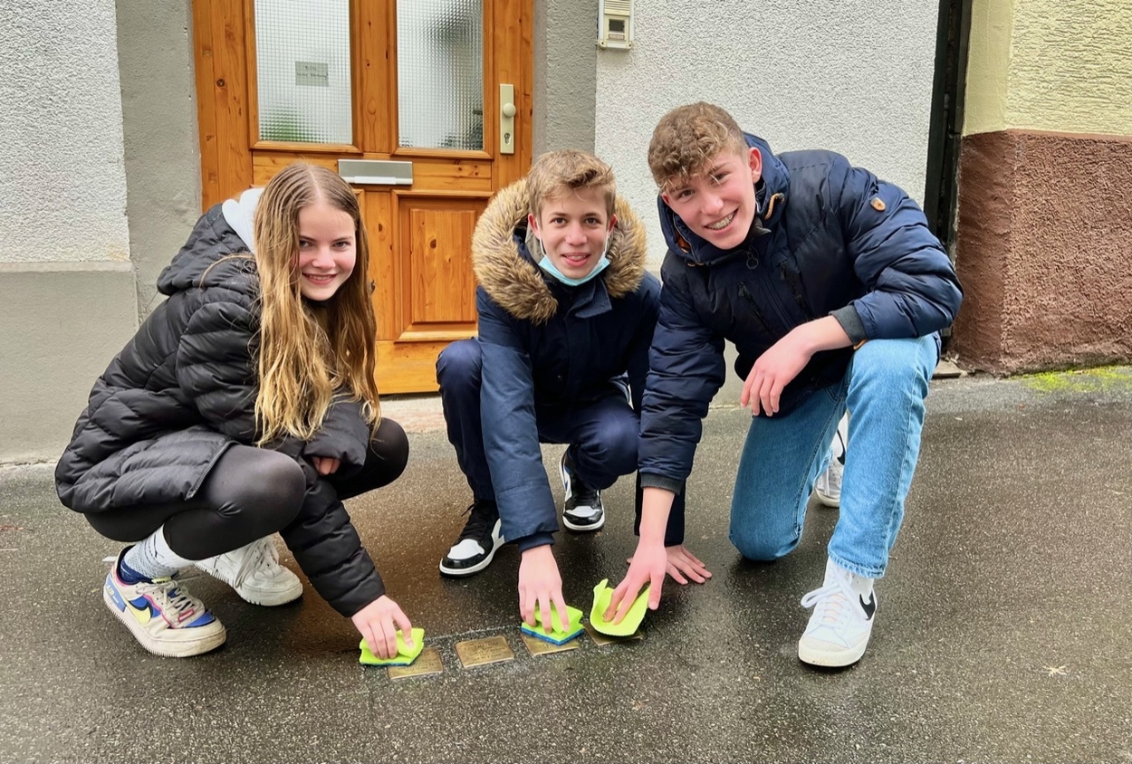 Zwei neunte Klassen des Bergstraßen-Gymnasiums widmeten sich unter der Leitung der Geschichtslehrkräfte Katalin König und Hans-Peter Vogel den Biografien der Hemsbacher Jüdinnen und Juden, die zumeist entweder im Konzentrationslager Gurs oder im Vernichtungslager Auschwitz umgebracht wurden. Kurzreferate der Schülerinnen und Schüler zu den jeweiligen Lebensläufen machten deutlich, dass hier Menschen am hellichten Tage aus ihrem Leben gerissen wurden, ohne dass jemand eingriff. Ein Rundgang zu den in Hemsbach verlegten Stolpersteinen und ihre Reinigung komplettierten diese Erinnerungsveranstaltung.